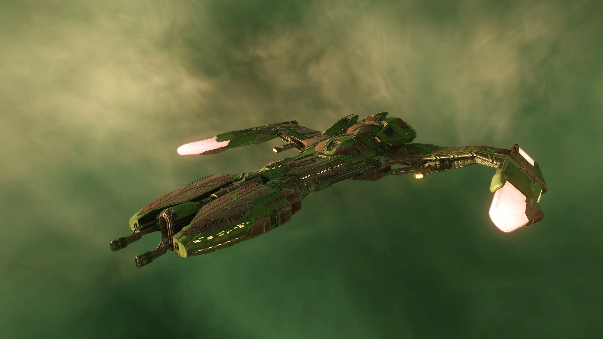 The Mat'Ha largely follows the lineage from the original Raptor-class of the 22nd century, scaled up. The Mat'Ha is roughly twice the size of the Raptor while maintaining the sleek, low-profile design of the original. The Mat'Ha incorporates many new technologies built into the design, unlike other aging designs like the B'rel-class Bird-of-Prey which has merely received numerous refits to her internal systems over the decades. The most notable integrated design that allows the Mat'Ha to excel is her new generation engines which make her both maneuverable at sublight speeds in combat but also her warp engines which make her one of the fastest vessels in the Klingon arsenal. These engines allow the Mat'Ha to excel over most other Klingon vessels is the speed, allowing for rapid deployment to any battlefield.