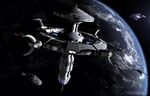 The Odyssey Heavy Explorer Squadron is a formation centred around the starship USS Odyssey, the prototype of the Odyssey-class explorer. It is currently under the command of Commodore James Preston McCallister. The squadron was assigned as a deep space expeditionary force within the Delta Quadrant. Assembled at the end of 2400, the group was ordered to proceed to the Swallow Nebula region beyond the Gradin Belt.
