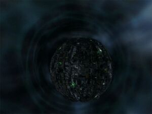 • The Borg sphere should only appear after your crew is fully engaged in the evacuation efforts.  The colonists of Matsu previously had no indication that the Borg could be involved.  Initially, the sphere should only be seen by the naked eye, from a distance, through the viewport of shuttles.  The idea is to spread rumours between colonists or between factions of your crew.  Create a sense of paranoia that the Borg are nearby to generate stakes for your crew to speed up their evacuation efforts before the Borg sphere intervenes.  This may also elicit distrust of the members of your crew who were assimilated by the Borg's Jupiter transmission at Frontier Day.