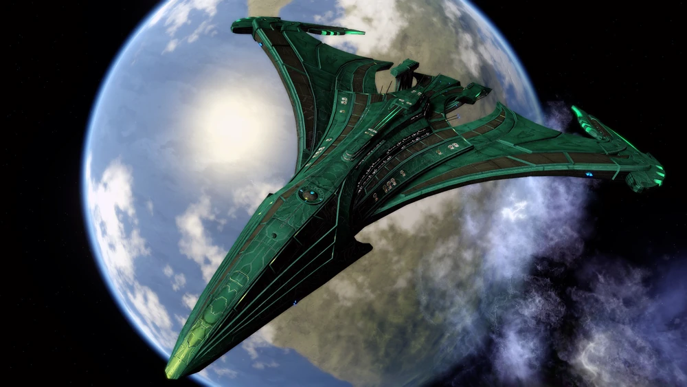 The Vastam-class warbird is the premier modern multi-mission battlecruiser for the Romulan Republic fleet. Originally developed as a science vessel capable of relaying data back to New Romulus from deep space, with the help of Starfleet, the ship metamorphized into a true multi-mission battlecruiser capable of most missions laid before it to give the Romulan Republic the versatility in modern capabilities it severely needed. The Vastam is quickly becoming the front-line multi-mission starship for the Romulan Republic as the D'deridex-class warbird did for the Romulan Star Empire or the Galaxy-class did for Starfleet in decades previous.