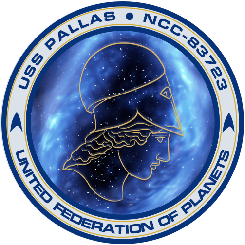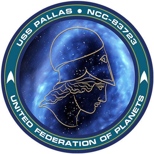 USS Pallas seal created by CrimsonTacit. Figure is licensed from Adobe Stock and the background was created with Adobe Firefly.