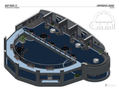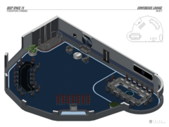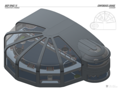 The primary docking facility is slightly larger than the one found aboard Spacedock II-class stations, with four massive space doors doors to handle Odyssey-class heavy explorers. As with older stations, this facility has a four-armed docking tower in the center, which can handle up to eight Odyssey-class ships or other large explorers at the level parallel with the bay doors, along with sixteen cruiser-sized vessels lower on those arms. There are a dozen shuttlebays in the primary docking facility, and mooring points for several dozen frigate-sized vessels in the lower portions of the vast open dome. Construction gantries can be extended out of the "floor" of the bay to handle major repairs, but these procedures are typically done at free-standing facilities elsewhere in the Avalon system. Between each of the space doors is a combination operations and shuttle bay facility. Each of these operations complexes handles flight control for one quarter of the station's zone of control, handing ships off to the secondary dock control facilities or the internal control facilities of the main dock, depending on the ship's intended berth. These facilities are identical to the primary station operations facility and can control the whole station if needed. The shuttle bays have a direct pass through into the bay.