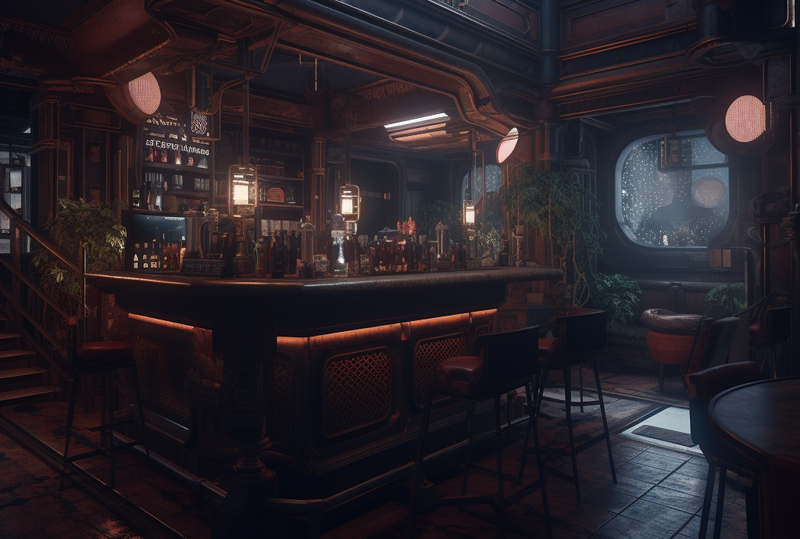 The Earl of Pembroke bar aboard the USS Endeavour. Created with Midjourney.