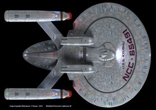 - Contrary to popular fanon opinion, the three bulbous structures above and below the ship's hull are not torpedo launchers, but are modular pods. Most often, they are sensor pods. They could also be cargo pods. Use your imagination, here!