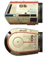 The Type-18 shuttlepod is a small warp-capable craft developed alongside the Type-10 shuttle for classes of starship like the Saber and Defiant to provide a hardened craft for use in situations where a small armed vessel is necessary. It is a cramped vessel with space for just two people, but it is highly maneuverable and has better range than its earlier cousins. It has a microtorpedo launcher mounted on the top of the hull, as well as several phaser emitters, along with ablative armor and relatively powerful shields for a ship of its size.