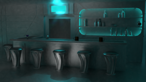 Run by Skal, a brusque Tellarite, Downtime is the bar of choice on Starbase Bravo for Starfleet officers wanting a no-frills drink. The fixtures are similarly plain: all spacer’s smooth metals and functional furnishings. The bar has a history from the original spacedock, and has moved over to the new station, so some of the furniture and even the replicator seem old-fashioned compared to the brand new starbase they now inhabit. Skal is a former Chief Petty Officer who takes a perverse delight in now speaking his blunt mind to officers, given that he can no longer suffer any repercussions from doing so. The walls are adorned with replica plaques of starships whose captains Skal and his predecessors have served drinks to, going back to the original Starbase 4’s construction, or else other Starfleet memorabilia. Civilians rarely go here.