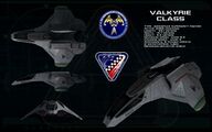 • Developed during the Dominion War, the Valkyrie is a balance between the speed and agility of the Sparrow and the firepower of the Peregrine, which makes it a well-rounded starfighter suitable for nearly any mission. Their small size makes them perfect for deployment from starships, and they are now the preferred fighter in Starfleet service.