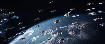 Two years of this new policy showed great success and was to culminate in celebrations on Frontier Day in April 2401. This great ceremony, ostensibly to commemorate the anniversary of the birth of 'modern' Starfleet, also served as the organisation's unofficial pronouncement to the galaxy of being 'back.' But Frontier Day was also the result of machinations by renegade Changelings and a final, defiant strike by the surviving Borg Queen, who orchestrated the assimilation of countless young officers and set Starfleet ships against each other in a devastating battle. Thousands of Starfleet officers at Sol were killed, particularly the older generation, who had not been subjected to the Queen's assimilation were gunned down by their young shipmates, and hundreds of ships heavily damaged or even destroyed. Though the hard work of Admiral Jean-Luc Picard and the former crew of the USS Enterprise-D destroyed the Borg and ended the attack, Starfleet suffered a major setback in its efforts to rejoin the galaxy.