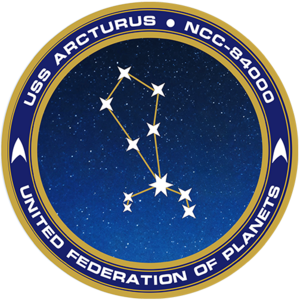 The ship's seal, with the Starfleet delta over Arcturus (also known as α Boo), the brightest star in the constellation Boötes, meaning 'plowman.'