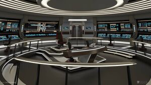 When the Constitution was built, her bridge design was altered compared to her sister ships. Instead of using the same design used in the Sagan-class, as a nod to its historical lineage, the bridge was design like an original Constitution class. Though this nostalgic approach was a welcome one, when Captain McCallister took command, he requested a slight modification. He had the platform his chair was on extended and two more command chairs placed either side of it. This was something he was used to from the Bellerophon and enjoyed from the Triton.