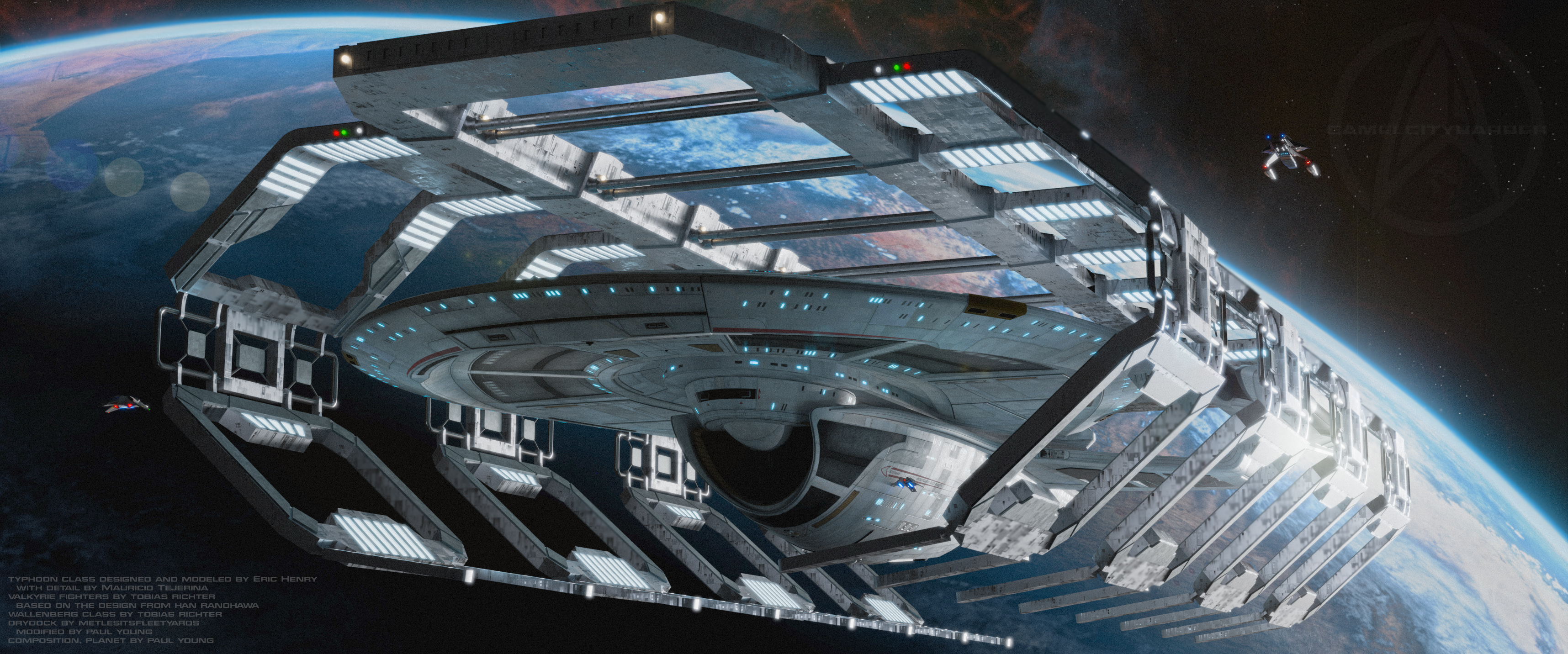 The USS Typhoon (NCC-90000) is a Typhoon-class exploratory cruiser constructed by the Federation Starfleet. She is the prototype for the Typhoon-class and is currently under the command of Captain Giovanni D'Antonio and is assigned to the Fourth Fleet's Task Force 93. A product of Avalon Fleet Yards, the ship features the latest in technological innovations and systems with a focus on independent exploration missions.